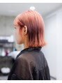 ブリーチ2回目安です。ピンクシャンプーだけで色持ちキープできちゃいます!切っぱなしボブとローレイヤーの組み合わせです