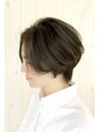 前下がりのショートボブ。顔周りの長さで小顔効果あり。段をつけることにより頭頂部にもボリュームが出やすく、頭の形が綺麗に見えるスタイル。