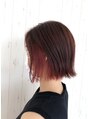 インナーカラー で個性派!赤系カラー。前下がりボブでカッコ可愛い外ハネボブ
