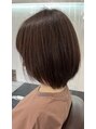 トップが長めのショートボブです☆どなたでも挑戦しやすいヘアスタイルです☆カラーはグレー系のアッシュで、赤みが出ないようにしています。