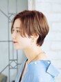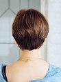 流しセンターパートのハンサムショートボブ スタイル。毛先にカールがあるのでカッコすぎず可愛らしさもあるヘアスタイルになっています!前髪伸ばしたいけれど顔にかかるのは嫌という方におすすめのスタイルになっています。[高崎/高崎駅]
