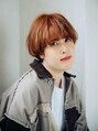 オレンジベースのカラーがガーリーで可愛いマッシュショートスタイルです☆おもためのバングですが、隙間を開けて肌感を見せることで軽さを出しています☆ゆるっとした癖を活かして動きのあるスタイルにしあげました☆〔上大岡駅〕