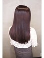 紫系のダークブラウンカラーで、赤黒い艶髪色にしています。韓国風の雰囲気がお好きな方におすすめの艶感カラーです◎カットは8センチばっさりカットして毛先に厚みを出して、顔まわりのレイヤーで動きのある小顔カットにしています。