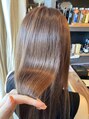 光の反射で色が変化する可愛いミルクティーです。毛先をパツッとカットしてツヤ髪を際立たせるカットをご案内いたしました。