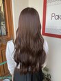 艶感アップな可愛さのコーラルピンクを使った、艶感のあるカラーリング☆カッパー系のほんのりオレンジ味のあるピンクだから、色落ちも気になりにくくてオススメです♪ロングのスタイルを活かして、フラットなカットラインへ☆