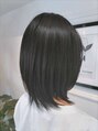 前下がりボブから伸ばしている途中で、今回はサイドから前上がりにカット。ハンドブロー・ノーアイロンで簡単にまとまるスタイルです。