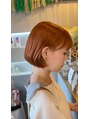 耳かけも可愛いミニボブと柔らかいオレンジカラーが相性抜群です◎ブリーチ必須のカラーです!