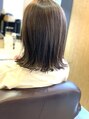 肩につくくらいの切りっぱなしスタイル!自然と外ハネになってくれるからめちゃくちゃ楽!カラーは透明感のあるアッシュ系のお色で!