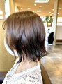 この長さが切りっぱなしボブで一番多いスタイル!毛先の軽さと少しの段が入ってるからいい感じ!カラーもアッシュ系でキレイなお色に!