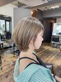 【気に入って頂いたスタイルは、ブックマークをしてご提示ください】アゴラインのショートボブ。丸みシルエットのボブに、ベージュブラウンが重く見えがちな硬い髪も柔らかく見えます。20代30代40代50代と幅広い年齢のお客様にご来店して頂いてます。