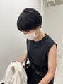 黒髪のマッシュショート耳にかけれるギリギリの長さで重めマッシュから切り込んだショートスタイルは、シルエットの丸みも大切にグラデーションでカット