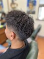 ツイストパーマをあててスソ周りはフェードに仕上げました。短くしたいけど遊びたいって人に向いてますね。小洒落た感じになりますね。またセットが楽です。おすすめのスタイリング剤はジェルかムースですね。
