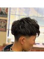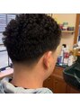 ツイストパーマをあててスソ周りはフェードに仕上げました。短くしたいけど遊びたいって人に向いてますね。小洒落た感じになりますね。またセットが楽です。おすすめのスタイリング剤はジェルかムースですね。