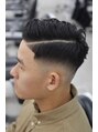 周りをスキンフェードにしてトップをサイドパートにしつつも少しラフにセットすることで、誰にでも似合うスタイルに。<理容室> <吉祥寺> <理容室> <バーバー> <理容室> <床屋><理容室> <メンズカット> <理容室> <ツイストパーマ> <理容室><フェード> <理容室>