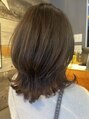 意外と扱いが難しいセミディスタイル。そんな時は毛先を外ハネにするのがgood♪カラーはオリーブグレージュ。赤味を抑えつつ透明感のある仕上がりです。