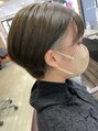 ショートスタイルのイヤリングカラーになります!元々ブリーチ毛のところに再度ブリーチを行い、アッシュ系の色味を足すことで、白に近いお色になります!カットはショートボブです!ドライヤーだけでまとまりますので、お手入れ楽ちんです!