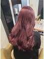 ブリーチ一回の、ボルドーピンクです。ボルドーピンクやワインレッドはピンクが多いと可愛く、レッドが多いと華やかに、パープルが入ると大人っぽくなります♪