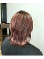 くすみ感、柔らかさのあるピンクベージュです。優しい雰囲気で女性らしいピンクです◎お肌にも馴染みやすいので柔らかいピンクがお好きな方にオススメです♪ウルフカットとスタイルでより軽さのある雰囲気となっております。