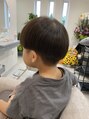 小さなお子様ならではのマッシュルームカットにさせていただきました。