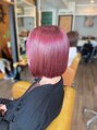 ペールカラーはお任せ下さい!今回は深みのあるチェリーピンク♪既にブリーチ履歴のあるお客様。多少ブリーチの根本が伸びていても、今回のように色味がしっかりあるカラーならオンカラーのみで、根元はダークピンクになって自然に馴染みます◎