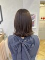 ぱつんと切りっぱなしミディ。大人の透明感カラー。ブリーチなしダブルカラーで透明感ある落ち着いたカラーに。お気に入りスタイルは保存してお持ちください♪