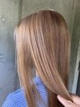 ケアブリーチ×2オンカラーにミルクティーベージュオンカラー時にGLTカラーを施術しています。ブリーチはメリット、デメリットがありますのでご相談の上施術させて頂きます。