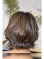 ふんわりとした丸みのあるフォルムで女性らしさを、毛先ハネと切りぱなしのシルエットが今ぽいこなれ感を演出。カラーは髪の赤みを抑えてくれるアッシュベージュでカラーリングして透明感をプラス。
