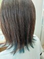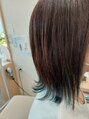グレイカラーにインナーカラーをしています。根元、表面はグレイカラー、インナーカラーはネイビーにしています。ハイライトが、一回だと、希望の色味は入りずらいです。