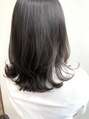 暗い髪でも軽やかでおしゃれにみえるスタイルレイヤーミディアムにブルージュカラーで赤みのないおしゃれ髪色に