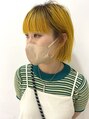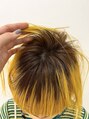 イエロー/ブラウンのルーツカラー。根本はブリーチ無しでカラーしています!根本がダークトーンのカラーなので、毛先のイエローとのバランスが良く、派手になりすぎないカラーです!ワンカラーに飽きた方、デザインカラーがおすすめです!