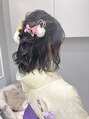 和装に合わせたヘアアレンジハーフアップは夏の浴衣 卒業式の袴の際に相性の良いヘアアレンジです!長さは肩より短い長さでも可能です