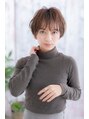 ニュアンス感ある動きをつけたくせ毛風カールでフェミニンな雰囲気に仕上げたエアリーショート。ほんのり濡れ感を残して、ボーイッシュな印象の中に色気をプラス。シースルーバングで目力強調したり、前下がりで小顔見せ効果もOK。大人かわいいショートです。