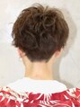 前下がりのマッシュショートベース。トップからフロントにしっかりスパイラルパーマと他の部分はカールをつけたパーマでフワッとぼさっと無造作質感に!