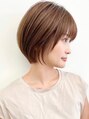 ひし形シルエットの大人かわいいショートボブ。艶カラーの大人ショートボブ。シースルー前髪で小顔に。抜け感ヘア。はちうえの量が膨らまない様に量をすいた骨格に合わせた似合わせカット。簡単スタイリングヘア。グレージュカラー グレーベージュ 斜めバング