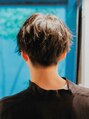 後ろをすっきりと高めの刈り上げにし、表面には軽く動きを出せるように短い毛を作っています。そのため、セットをするときに動きが自然とでる、マッシュスタイルです。そのため自分でのセットもやりやすくなります。〔上大岡駅〕