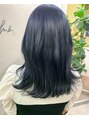 グレー混じりの落ち着いたネイビーブルー。ブリーチベース。ブリーチ2回から