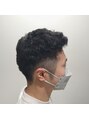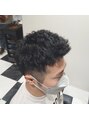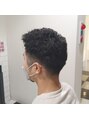 サイドのツーブロック、ネープの刈り上げは高めにすっきりとトップもイメージするカールがよく出やすいようカットしパーマ