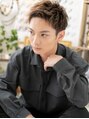 【スタイルは★ブックマーク★が便利】派手に見えがちなベージュカラーやハイトーンは、スッキリ前髪を上げたワイルドアップバングで爽やかで男らしい印象に。多毛の方はソフトツーブロックや刈り上げで毛量調整がオススメ。(メイク担当:川口店岩淵)