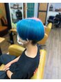 刈り上げマッシュ 2トーンカラー アクアブルー ペールピンク