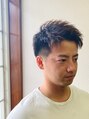 バックとサイドを高く刈り上げ、ベリーショートのアップバングスタイル。立ち上げも自由自在でセットも楽にきまるヘアスタイル。