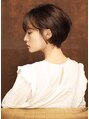 ポイントを高めに作ったメリハリのあるショートヘア。トップのレイヤーは表面にさまざまなニュアンスを出してくれます。後頭部にかけてのくびれで、首周りから肩にかけて美しく見せて、頭の形もよく見せます。