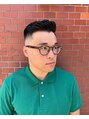 フェードとアイロンパーマ。直毛で流しにくい人にオススメ。このスタイルを希望の方は西村を指名後、クーポンを選んで下さい。