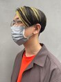前下がりのアシンメトリースタイルに太めのハイライトがインパクト大のデザインカラーが個性的なスタイルです。黒髪とイエローの組み合わせが最高!