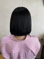黒染めしない範囲で暗いカーキグレーにカラーさせていただき肩にあたる長さのボブにカットさせていただきました
