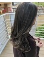 自然な光でさらにハイライトの部分の透明感が増します!ブリーチ1回のハイライトでも光の入る箇所で黄色味を消せるようなお色味にしてます。