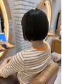 えりあしギリギリの長さのミニボブ。なるべくタイトに見えるようにカットしています。クセで広がる方はストレートやトリートメントがおススメです(^^)