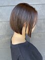 前下がりショートボブです♪切りっぱなしのラインは揃えて、中の方を軽くしてます^_^扱いやすいですよ~!カラーはモーブブラウンでツヤ感もアップ♪