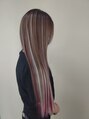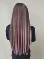 ロングの髪に城とバイオレットのエクステを120gで強めのスタイルに変身です。カラーはブリーチ履歴を使ってのシャドールーツカラーでしっかりスジ感を出してます。(ビフォーを参照)