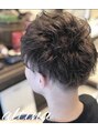 厚めにとったアウトラインを全て刈り上げ、ツーブロック状態へ。トップは動きが出やすいようにしっかりレイヤーとパーマを入れています♪