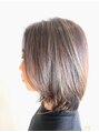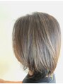 ボブから伸ばしていくミディアムグラレイヤー、ハネをうまく生かすにはイングラを残してフェイスラインまでにレイヤーを入れるのがポイント。カラーはウィービング25パネルで14レベルにしてグレー系でトーンダウン。インナーグレージュがあるとポップクール!